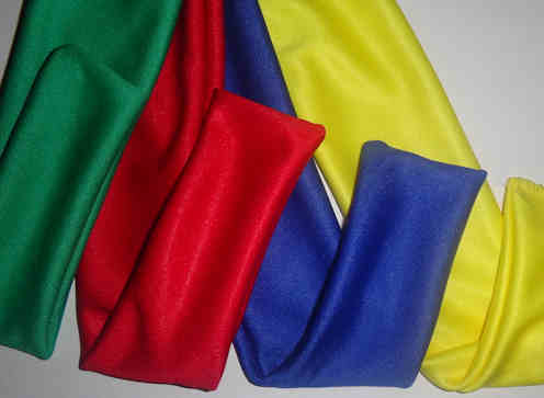 Em 4 cores, com aproximadamente 1m de comprimento. Podem ser utilizadas também como bandanas na cabeça, braços, pernas, etc. Por não se tratar de um simples tapa-olhos, este tipo de venda é muito versátil e permite uma ampla gama de utilizações, além de serem facilmente laváveis.